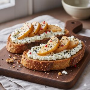 Toast Rústico de Queijo Boursin, Pera Caramelizada e Gergelim Preto