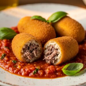 Croquete Cremoso de Língua Bovina ao Molho de Tomate
