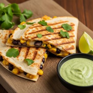 Quesadilla de Feijão Preto e Milho com Molho de Coentro