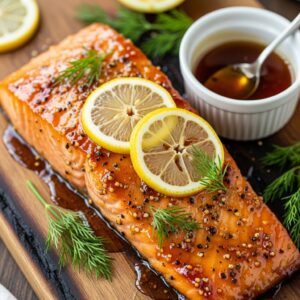 Salmão Glaceado com Mel, Mostarda e Limão