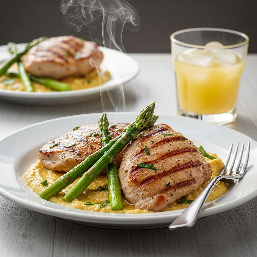 Supremo de Frango Grelhado com Aspargos Crocantes e Manteiga Aveludada de Limão