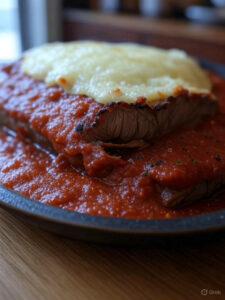 Bife à Parmegiana Rústico com Crosta de Provolone Defumado