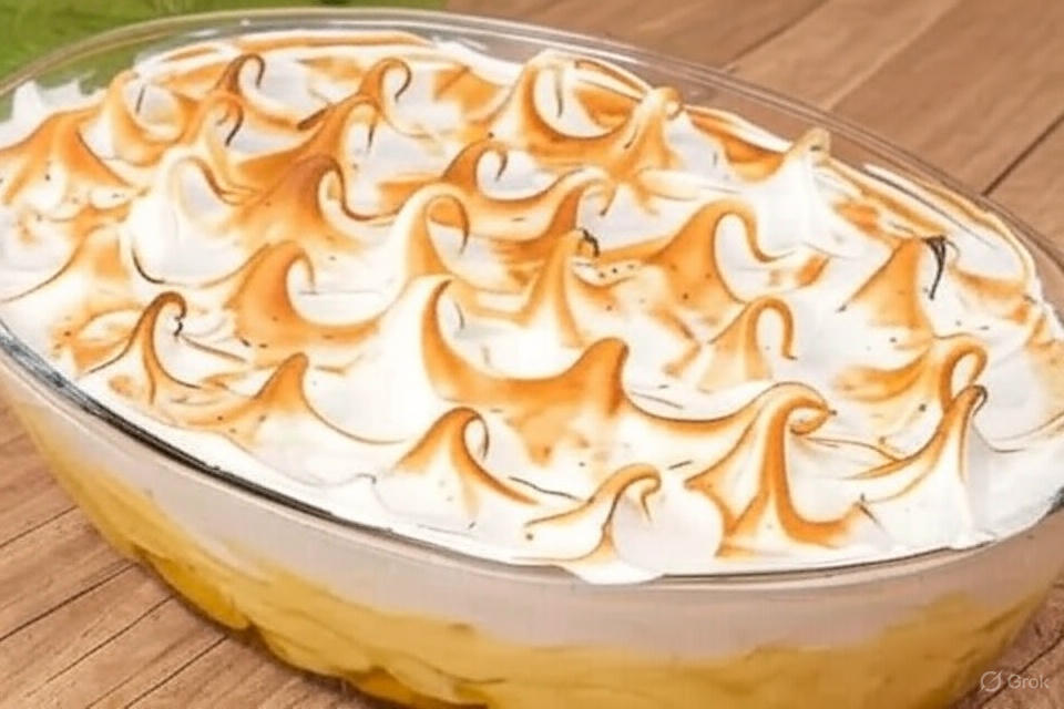 7 Coloque a travessa no forno elétrico a 160º com o dourador ligado, e deixe que a clara em neve fique dourada, e está prono.
