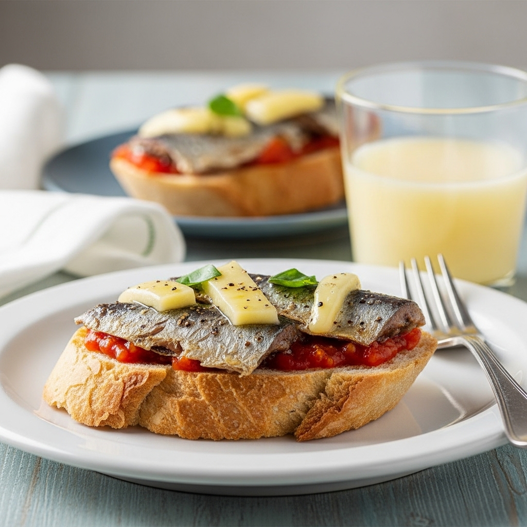 Uma explosão de sabores do mar e da terra em cada mordida, este crostini é a combinação perfeita entre a suculência da sardinha e o gratinado irresistível do queijo, ideal para um lanche sofisticado ou petisco saboroso.