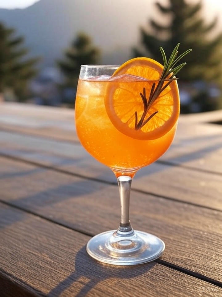Este drink é uma variação elegante e refrescante do clássico Spritz, perfeito para um fim de tarde em Gramado. O alecrim adiciona um toque herbáceo que complementa a doçura da laranja, criando uma bebida leve e sofisticada.
