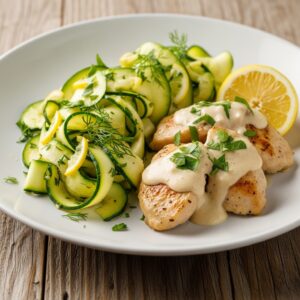 Frango Cremoso com Fitas de Abobrinha ao Limão e Ervas