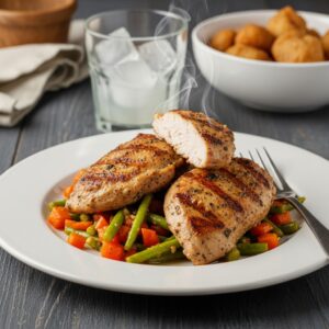 Frango Grelhado ao Limão e Ervas com Jardim de Legumes Dourados