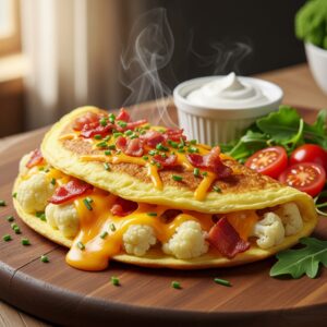 Omelete de Couve-Flor com Queijo e Bacon (Low Carb)