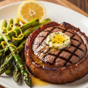 Picanha Grelhada com Manteiga de Alho e Aspargos no Limão