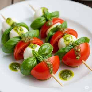 Salada Caprese no Palito com Pesto Fresco